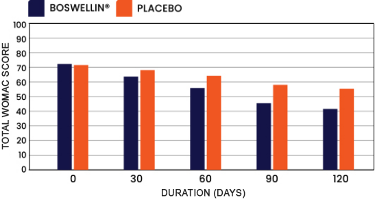 The effectiveness of boswellic acids was measured by the WOMAC questionnaire. It evaluates the condition of patients suffering from degenerative joint disease. Differences in the effectiveness of using Indian frankincense resin extract compared to the placebo group were found to be significant.